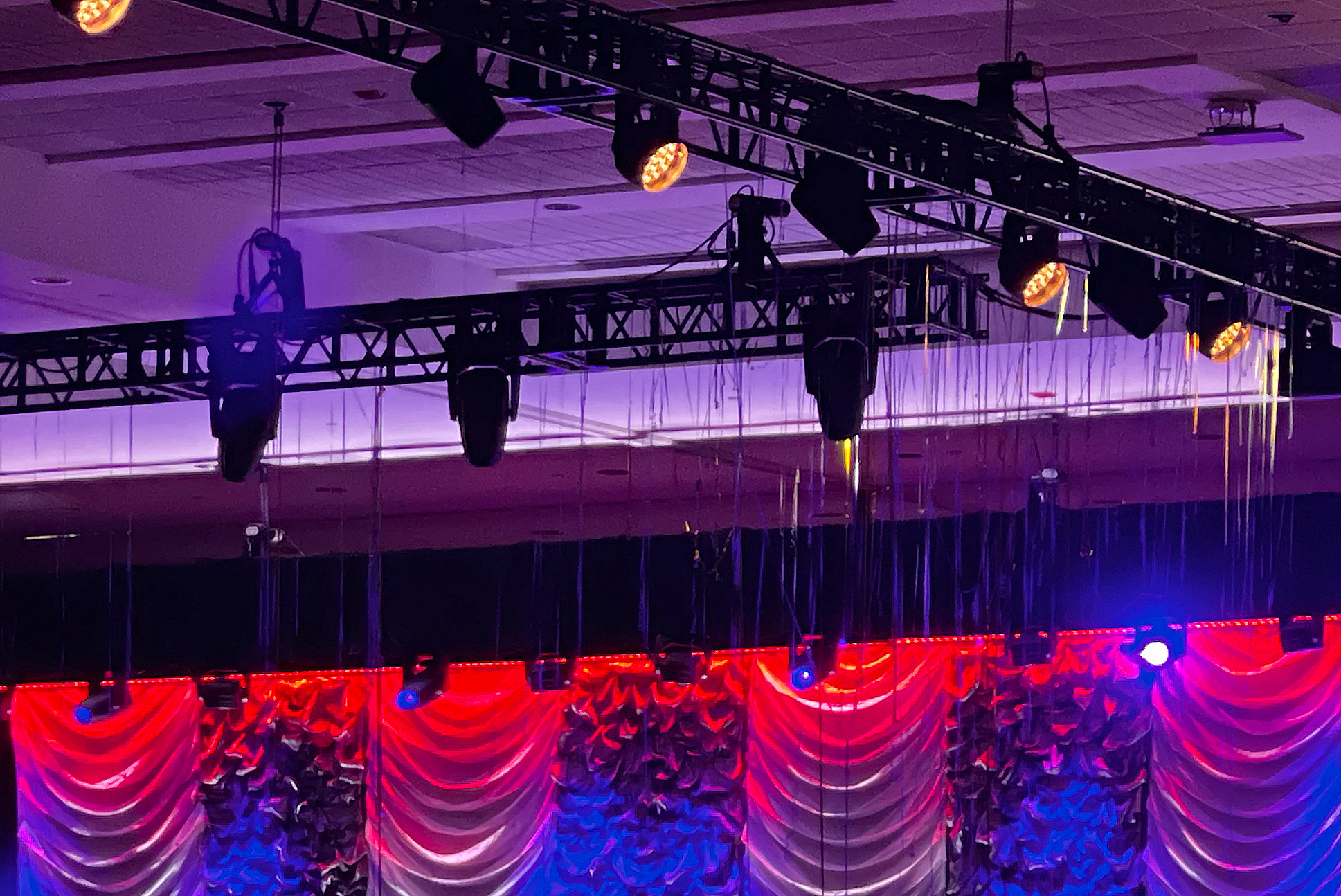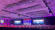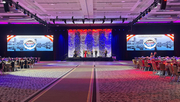 "This was not your standard corporate design with a stage wash and audience wash," she explained. "We needed lighting to transition from a formal dinner to onstage presentations, to performances by bands, cheerleaders, and dance groups, to a late-night dance party. We needed those clean stage washes and audience lighting, but also pickups, accent lighting, and vibrant effects while supporting other elements like walkthroughs and videos. We needed a light that could do a lot."