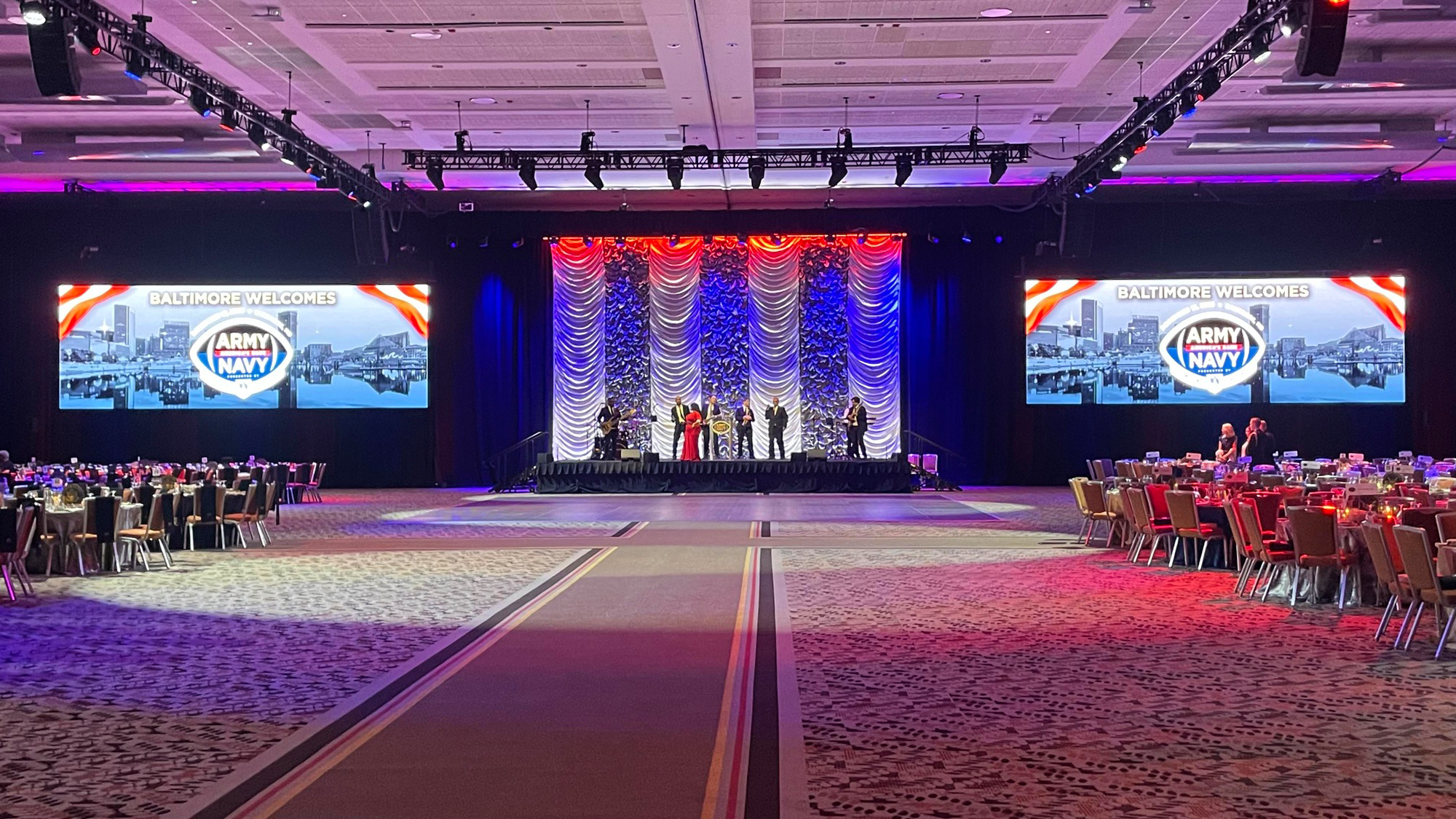In December, the 2025 Army-Navy Gala at the Baltimore Convention Center came alive with dazzling lighting designed by Christina Rupp, using Elation PARAGON fixtures supplied by Afterglow Lighting. The event, held ahead of the 126th Army-Navy football game, one of the oldest and revered rivalries in U.S. college football, featured a transformed ballroom complete with a main stage, dance floor, and a variety of performance elements honoring those who serve.