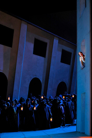 Purchased early in the summer, SFO's PARAGON LT units are positioned across several electrics, with two on an FOH balcony rail and two auxiliary side positions. Partier served as the revival lighting designer for Rigoletto, using PARAGON fixtures primarily for top, back, and side lighting, complemented by a select number of specials. "They helped a lot with creating atmosphere in terms of the visuals," he said, "and were really good at lighting background."