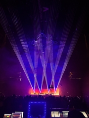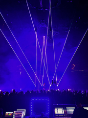 Regarding key laser-centric moments of the set, Wood highlighted the B-stage show opening, when the lasers project straight down onto the stage and "frame" the artist. Wood saw from front of house how the X-Laser fixtures drew in the audience during that impactful moment, and the lasers provided unparalleled punch and visual contrast throughout the entire performance.